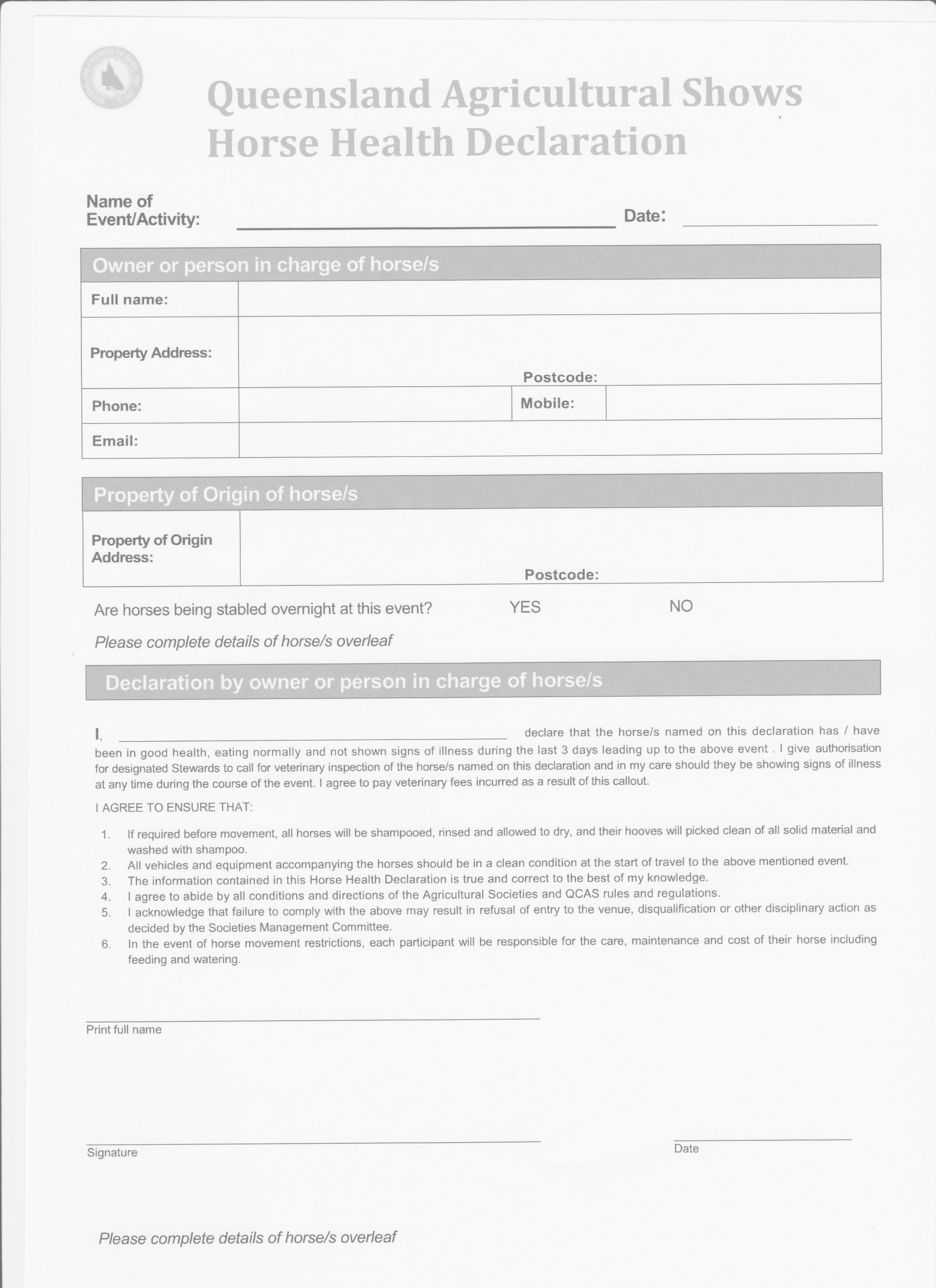 Entry Form ~ Livestock